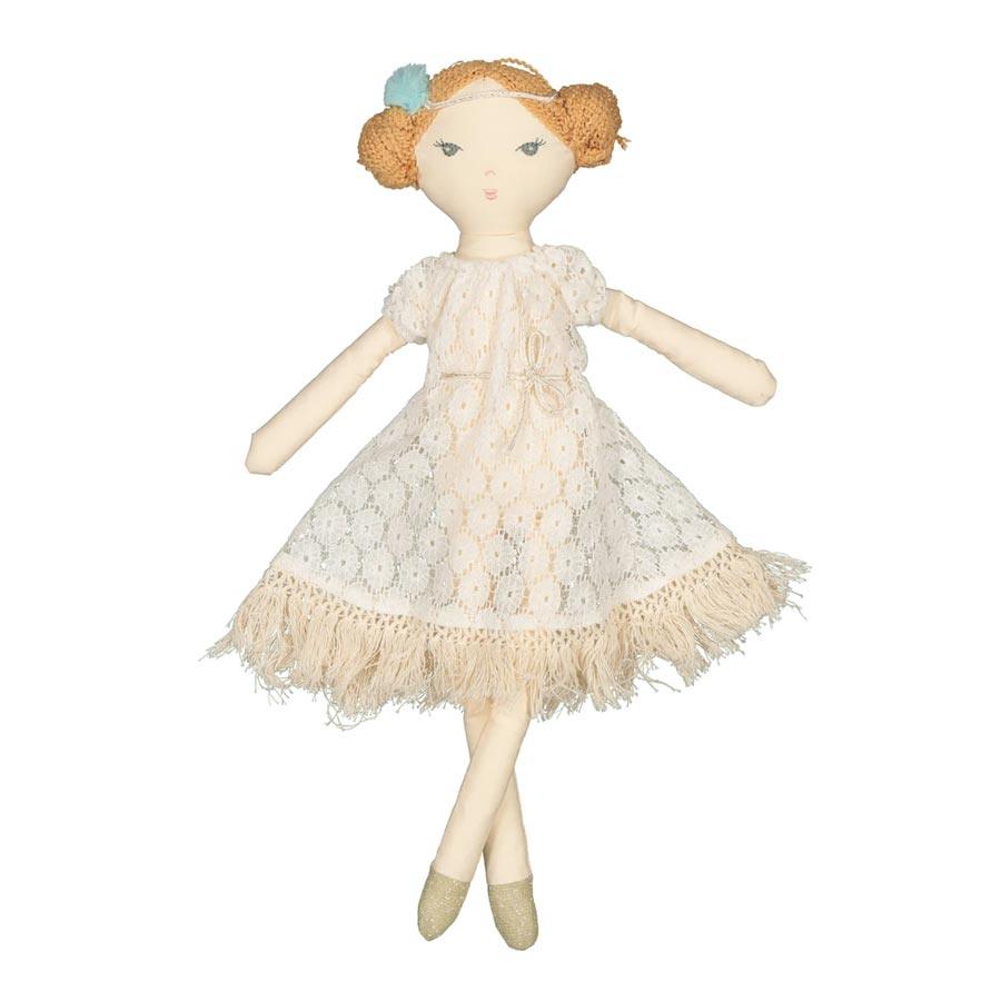 Ever elegant in her white lace, Tallulah Doll is huggable and perfect to take on adventures.