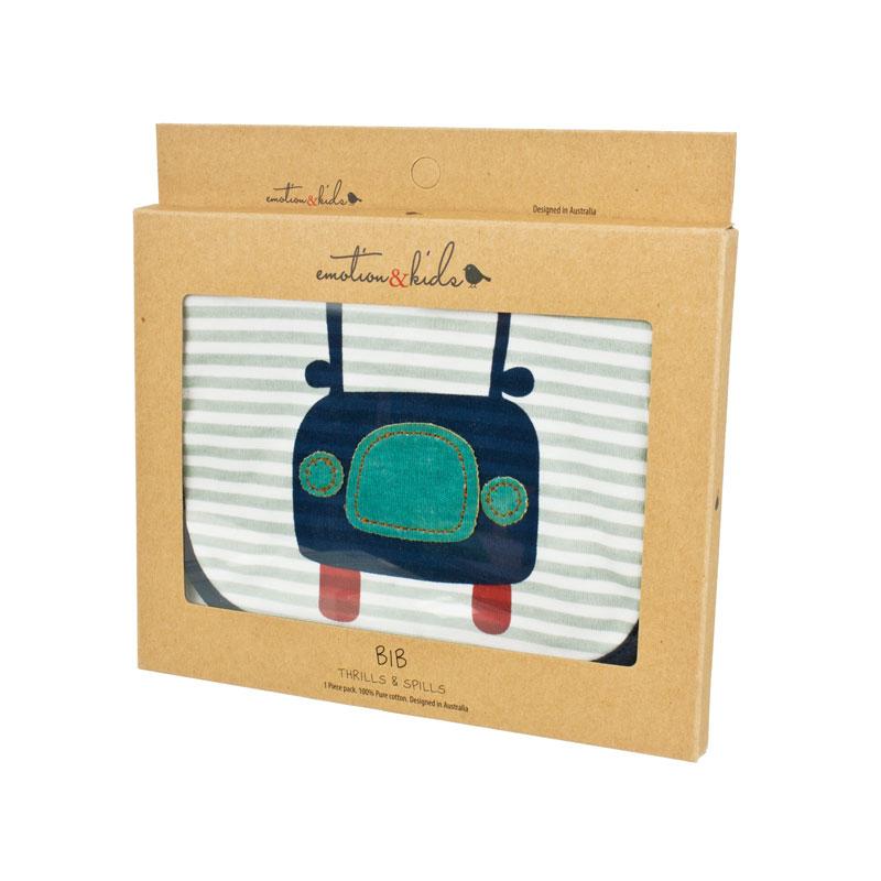 This cute car bib is perfect for protecting clothing against mealtime mess and dribble.