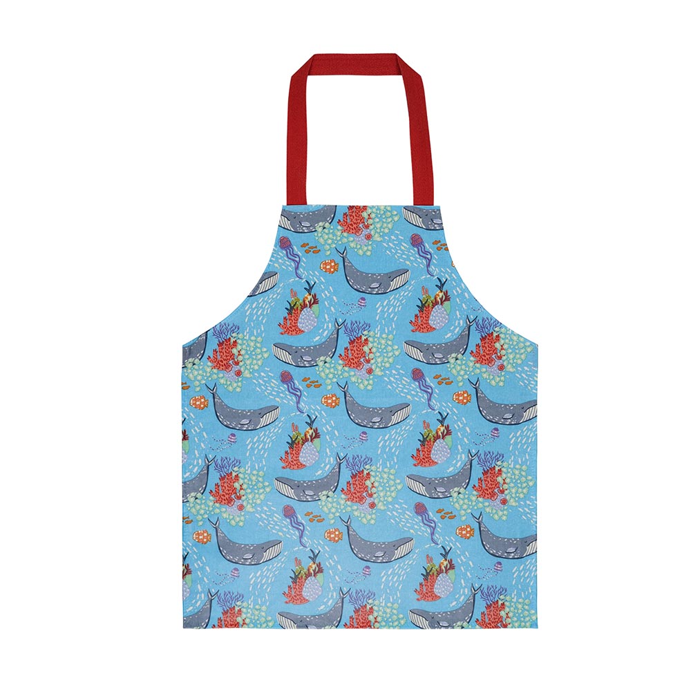 This cute children's apron design features a wonderful oceanic scene of whales, fish, jellyfish & shells - the perfect gift for children who love to help in the kitchen or make a mess with paints.