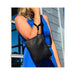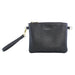 Features gold accents, lined pockets, detachable short wrist strap & longer strap.