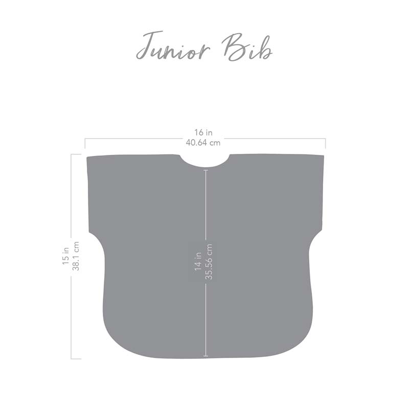 Generously sized and both comfortable and durable, the Junior Bib can fit 1 - 3 years.