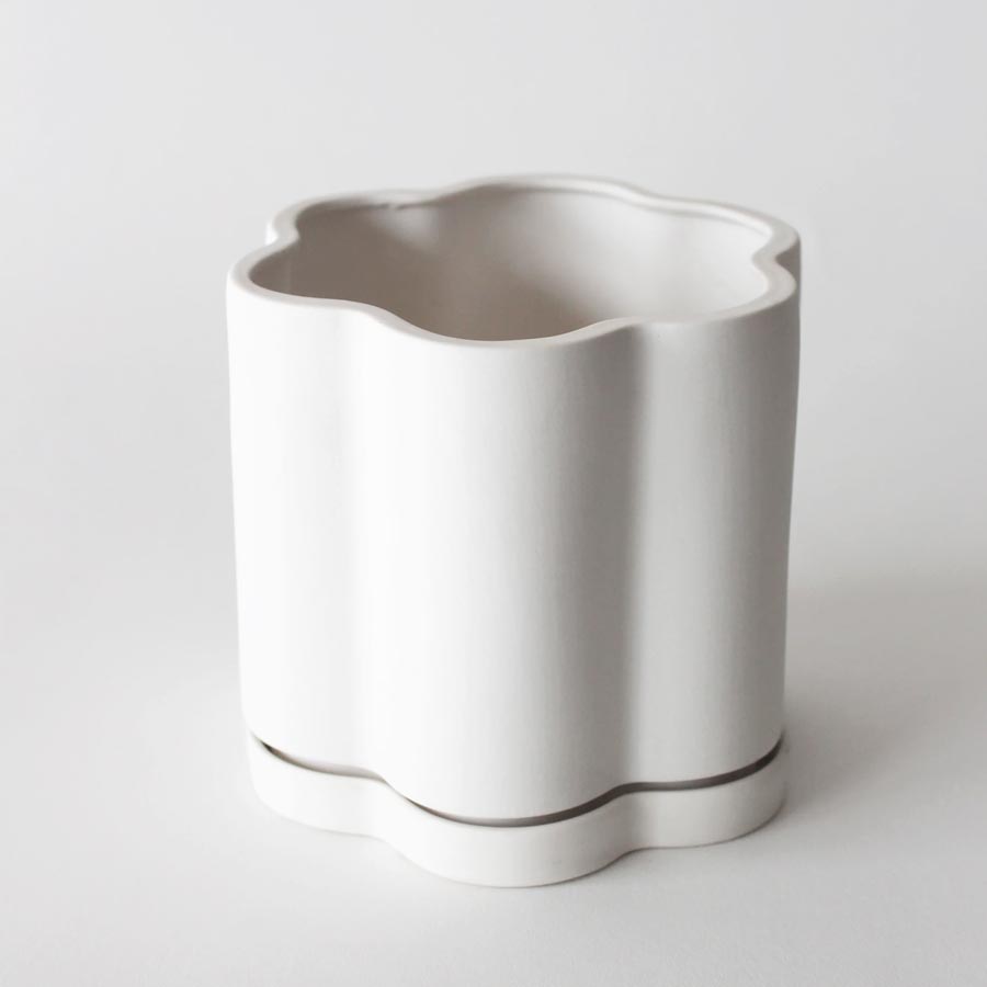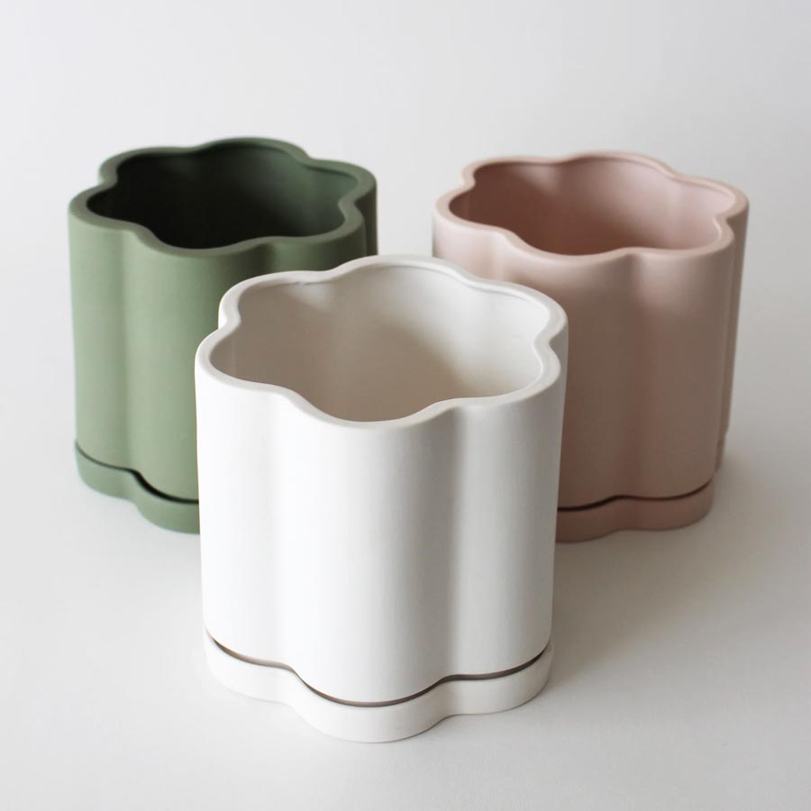Featuring a beautiful flower shape with drainage hole and matching saucer.